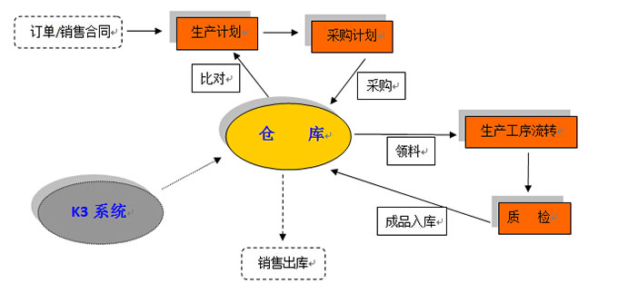 1)◇代表一個(gè)實(shí)際工序;[]代表軟件操作;□代表一級(jí)倉(cāng)庫(kù)
