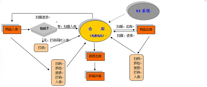 4)客戶退貨時(shí),理論上要先掃碼;再拆檢:好的打碼入庫(kù);不好的報(bào)損。